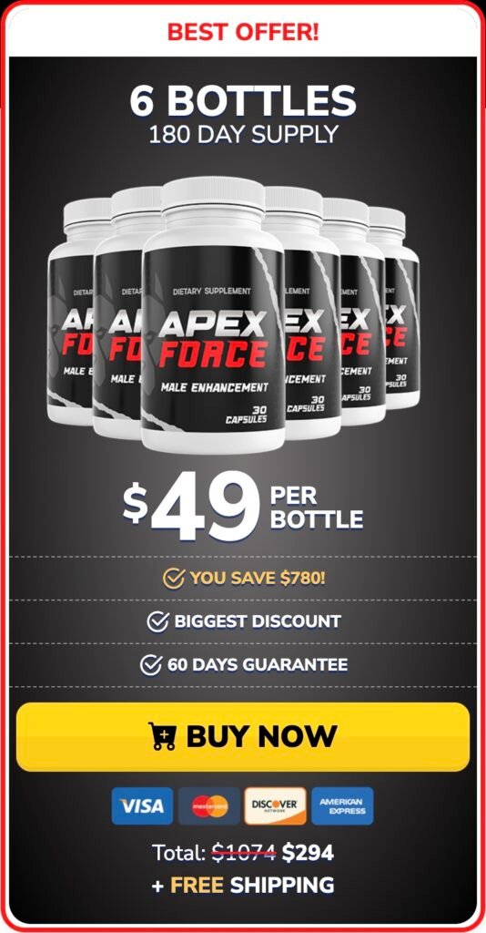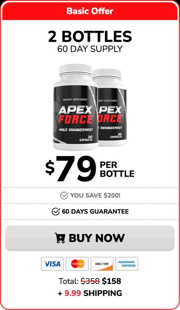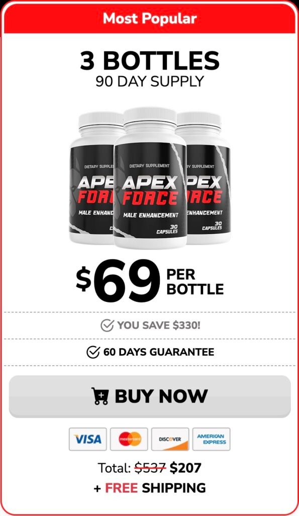 ApexForce is a premium supplement crafted from natural ingredients, which are traditionally valued for their role in supporting male wellness. It is designed to complement a balanced lifestyle for men seeking to support their overall well-being. Results can vary depending on individual factors, and consistent use is recommended. As with any supplement, please consult your healthcare provider to determine if it is right for you.